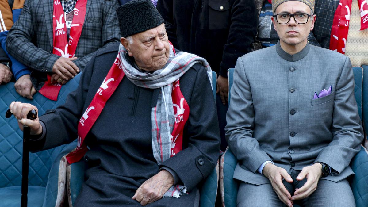जम्मू-कश्मीर के मुख्यमंत्री उमर अब्दुल्ला, दाएं, राज्य नेशनल कॉन्फ्रेंस के अध्यक्ष फारूक अब्दुल्ला के साथ। फ़ाइल। | फोटो साभार: पीटीआई