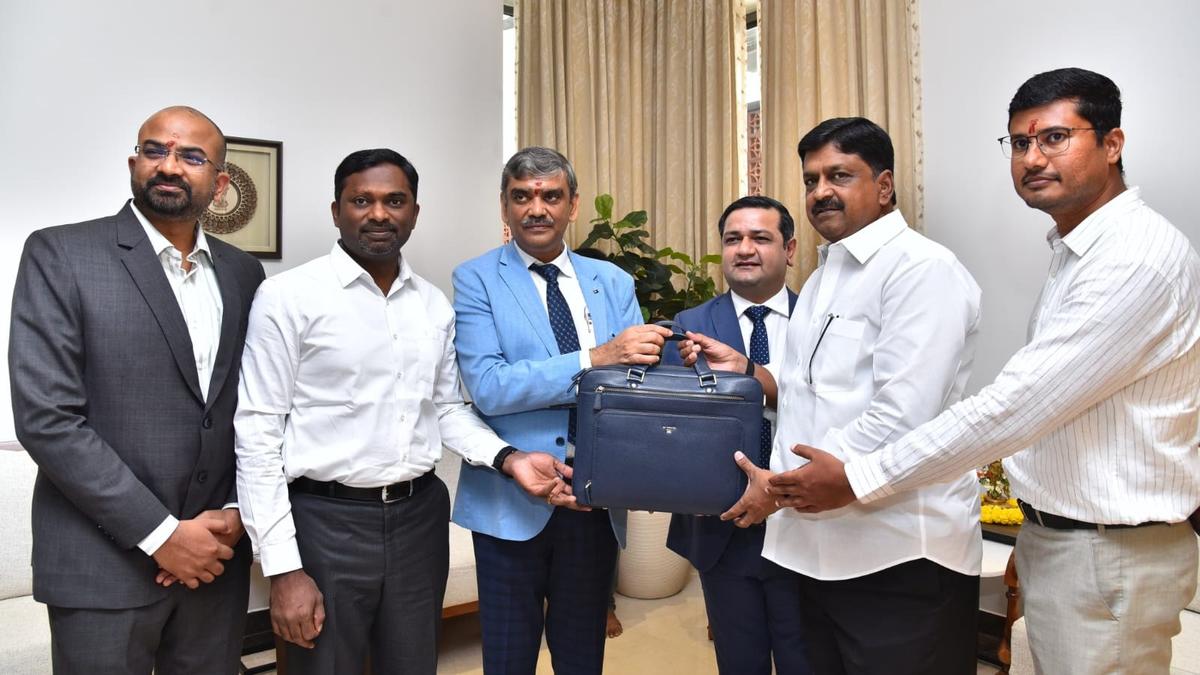 वित्त विभाग के अधिकारी 14 फरवरी, 2026 को वित्त मंत्री पय्यावुला केशव को बजट दस्तावेज सौंपते हैं। फोटो: विशेष व्यवस्था