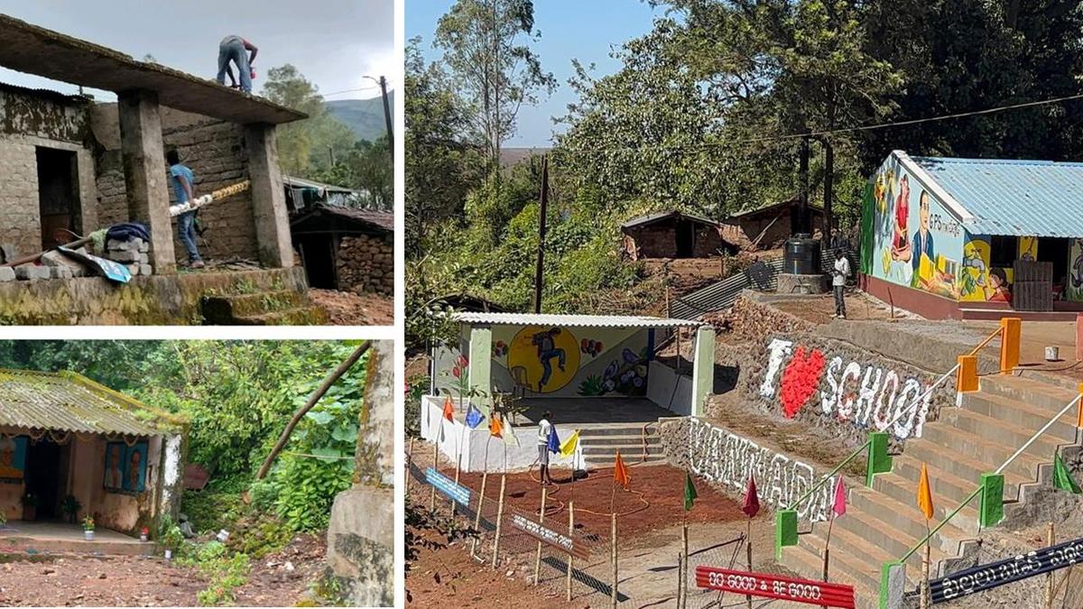 (बाएं) अल्लूरी सीतारमा राजू जिले के पेडाबयालु मंडल के वन्नदा गांव में जीर्ण-शीर्ण स्कूल भवन। (दाएं) नवीनीकरण के बाद स्कूल की इमारत। | फोटो साभार: विशेष व्यवस्था