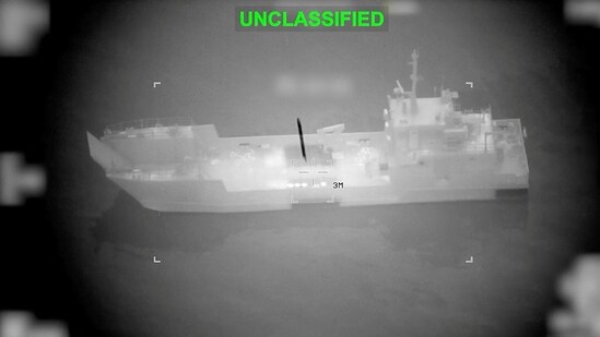 यूएस ईरान युद्ध समाचार लाइव: 10 मार्च, 2026 को जारी किए गए वीडियो के इस स्क्रीन कैप्चर में, ईरान के साथ यूएस-इजरायल संघर्ष के बीच, होर्मुज के जलडमरूमध्य के पास दिए गए स्थान पर हमलों के दौरान एक प्रक्षेप्य, जिसे यूएस सेंट्रल कमांड (सेंटकॉम) एक ईरानी नौसैनिक जहाज बता रहा है, के करीब पहुंच गया, जिसमें बारूदी सुरंग बिछाने वाले जहाजों पर हमले भी शामिल थे।