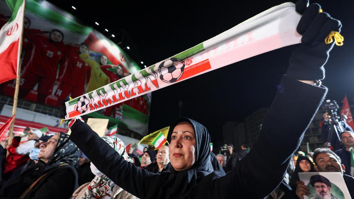 19 मार्च, 2026 को तेहरान, ईरान में ईरान के साथ अमेरिका-इजरायल संघर्ष के बीच, पांच खिलाड़ियों द्वारा ऑस्ट्रेलिया में प्रस्तुत किए गए शरण आवेदन वापस लेने के बाद ईरान की महिला राष्ट्रीय फुटबॉल टीम के देश लौटने पर स्वागत समारोह के दौरान एक महिला एक बैनर रखती है। फोटो साभार: रॉयटर्स
