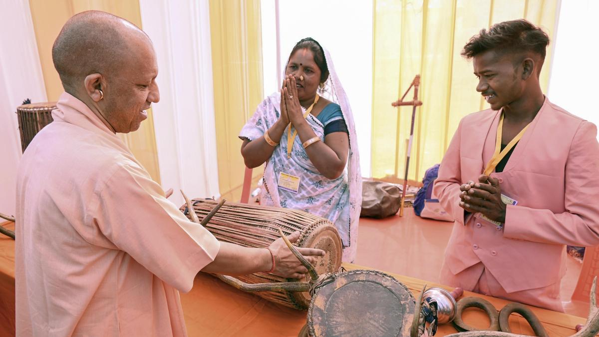 उत्तर प्रदेश के मुख्यमंत्री योगी आदित्यनाथ 15 नवंबर, 2025 को उत्तर प्रदेश के सोनभद्र जिले में ‘जनजातीय गौरव दिवस’ समारोह के हिस्से के रूप में एक कार्यक्रम के दौरान एक स्टॉल का दौरा करते हैं। फोटो साभार: पीटीआई