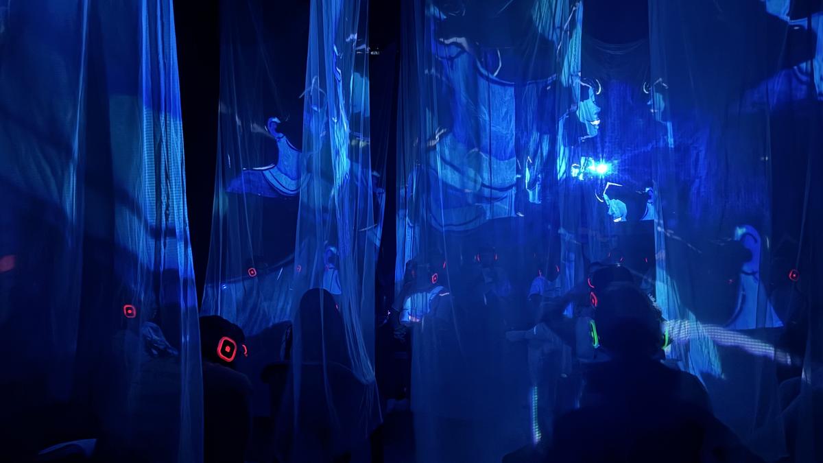 हेडफ़ोन दर्शकों के प्रत्येक सदस्य को थिएटर प्रस्तुति का एक अनूठा अनुभव देते हैं | फोटो साभार: विशेष व्यवस्था