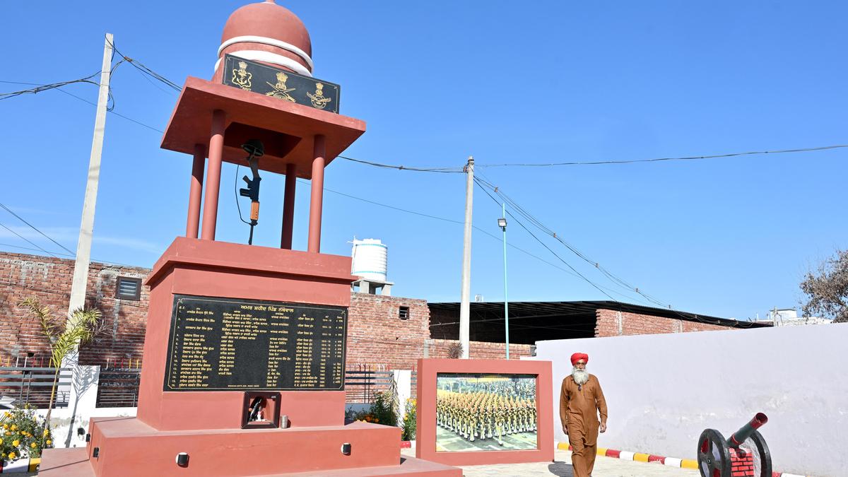 नाथोवाल गांव में युद्ध स्मारक, जहां अनुभवी युवा पुरुषों को भारतीय सेना में शामिल होने के लिए प्रोत्साहित करने के लिए एक चित्र संग्रहालय बनाने पर विचार कर रहे हैं। | फोटो साभार: शशि शेखर कश्यप