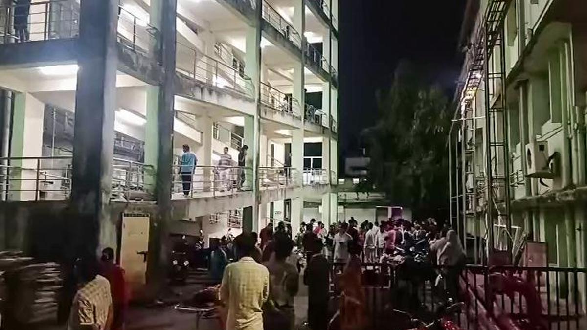 कटक में एससीबी मेडिकल कॉलेज और अस्पताल के ट्रॉमा केयर आईसीयू में आग लगने के बाद लोग बाहर जमा हो गए। फ़ाइल। | फोटो क्रेडिट: एएनआई