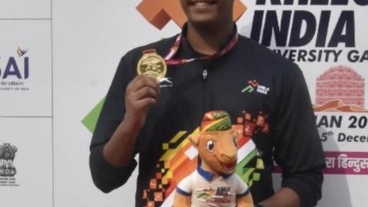 केएलयू के छात्र नेलवल्ली मुकेश, जिन्होंने खेलो इंडिया यूनिवर्सिटी गेम्स में स्वर्ण पदक जीता।