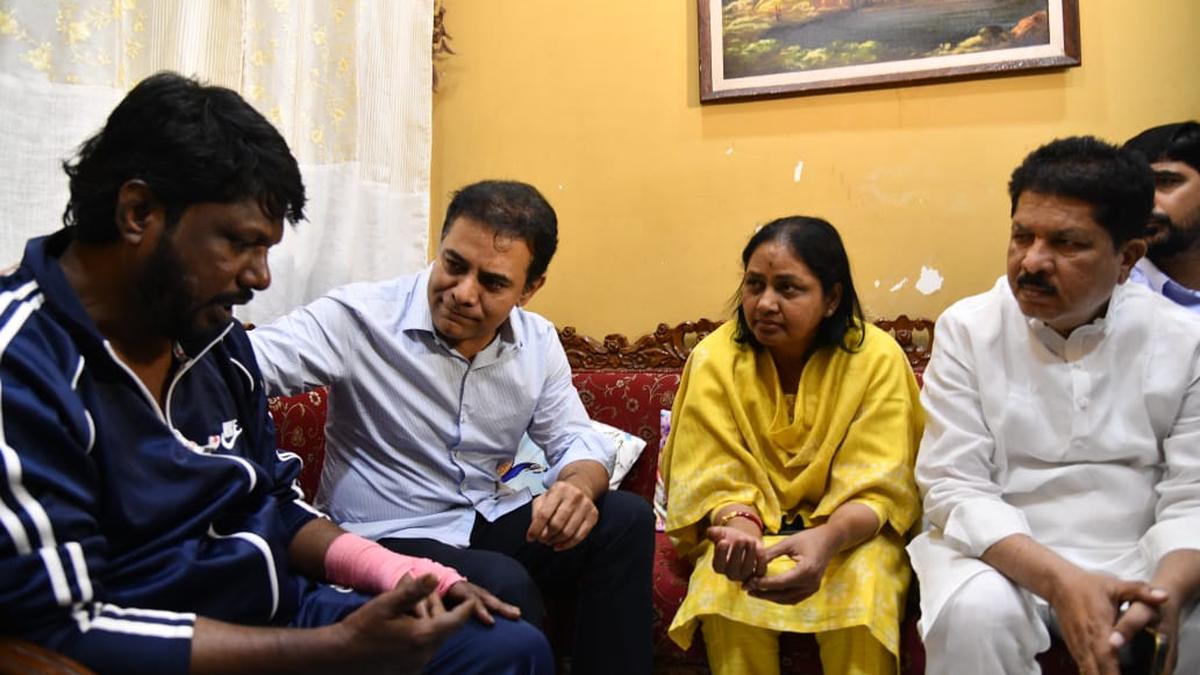 जुबली हिल्स विधानसभा उपचुनाव परिणाम घोषित होने के एक दिन बाद, भारत राष्ट्र समिति (बीआरएस) के कार्यकारी अध्यक्ष, केटी रामाराव ने पार्टी कार्यकर्ता राकेश से मुलाकात की, जो शुक्रवार (14 नवंबर, 2025) की रात कथित तौर पर कांग्रेस कार्यकर्ताओं के हमले में घायल हो गए थे।