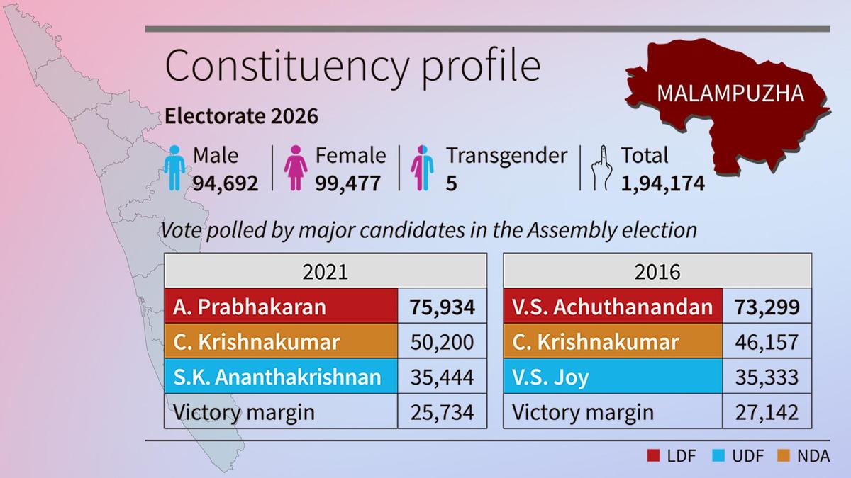 इस बार, मालमपुझा में श्री कृष्णकुमार और श्री प्रभाकरन के बीच दोबारा मुकाबला होगा। यूडीएफ द्वारा अच्युतानंदन के पूर्व निजी सहायक ए. सुरेश को अपने उम्मीदवार के रूप में चुना जाना भी दिलचस्प है।