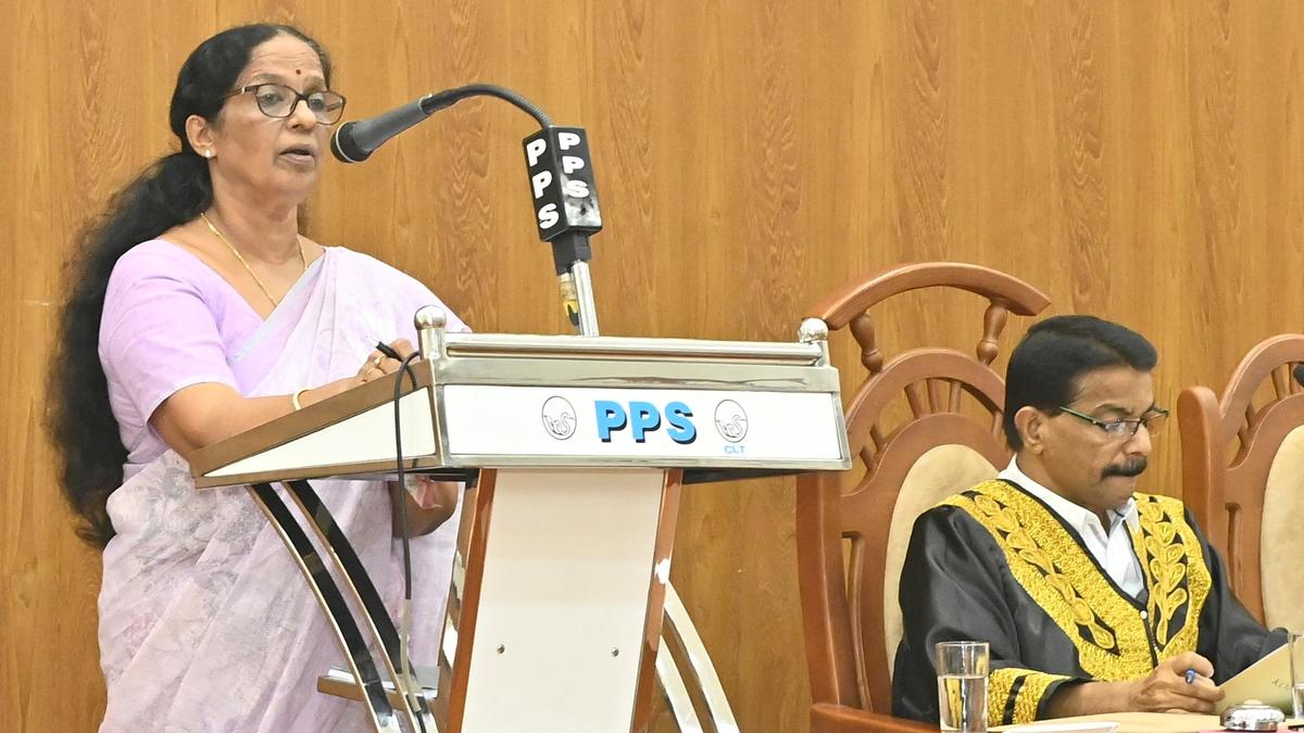 उप महापौर एस. जयश्री 28 फरवरी को वित्तीय वर्ष 2026-27 के लिए कोझिकोड निगम बजट पेश करती हैं। फोटो साभार: के. रागेश