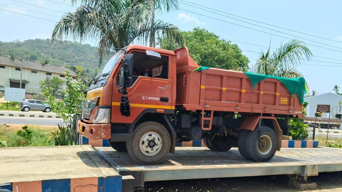 सड़क पर कुचले हुए पत्थर फैलाने और अन्य वाहनों की आवाजाही को खतरे में डालने के लिए कोडागु जिला पुलिस द्वारा एक टिपर ट्रक को दंडित किया गया। | फोटो साभार: विशेष व्यवस्था