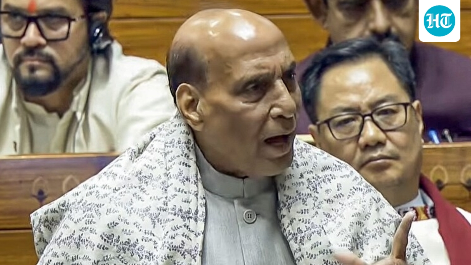 रक्षा मंत्री राजनाथ सिंह ‘वंदे मातरम’ पर बहस में भाग लेने के दौरान विपक्षी सांसदों पर अपना आपा खो बैठे सोमवार को लोकसभा.
