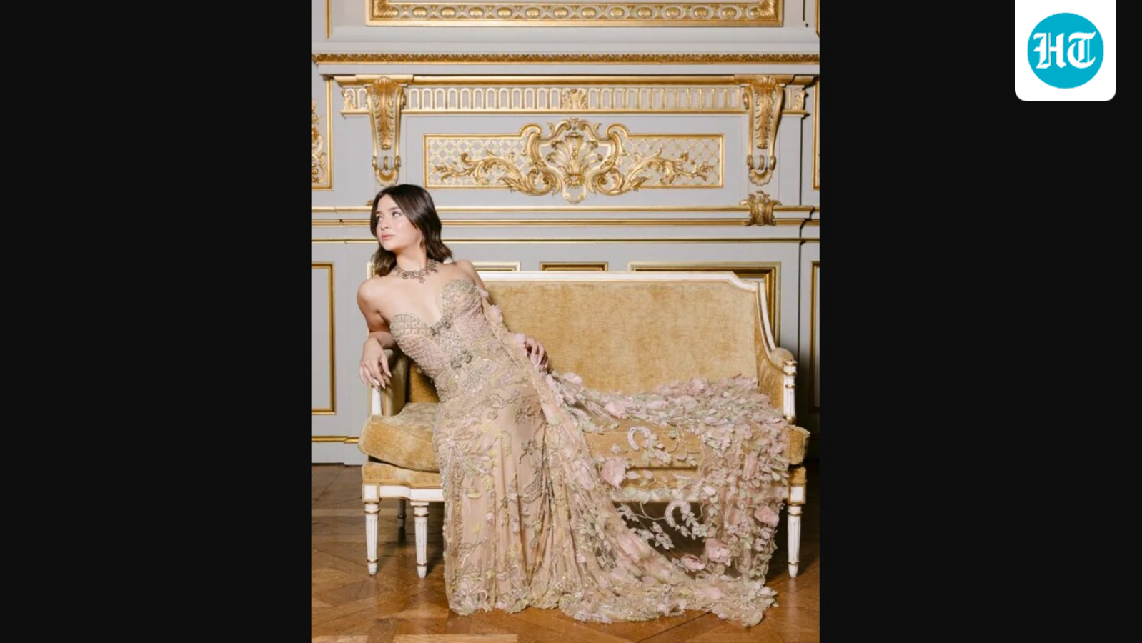हैलो की रिपोर्ट के अनुसार, उन्होंने एली साब हाउते कॉउचर स्ट्रैपलेस गाउन पहना था, जिसमें जटिल विवरण और अलंकरण थे! पत्रिका।
