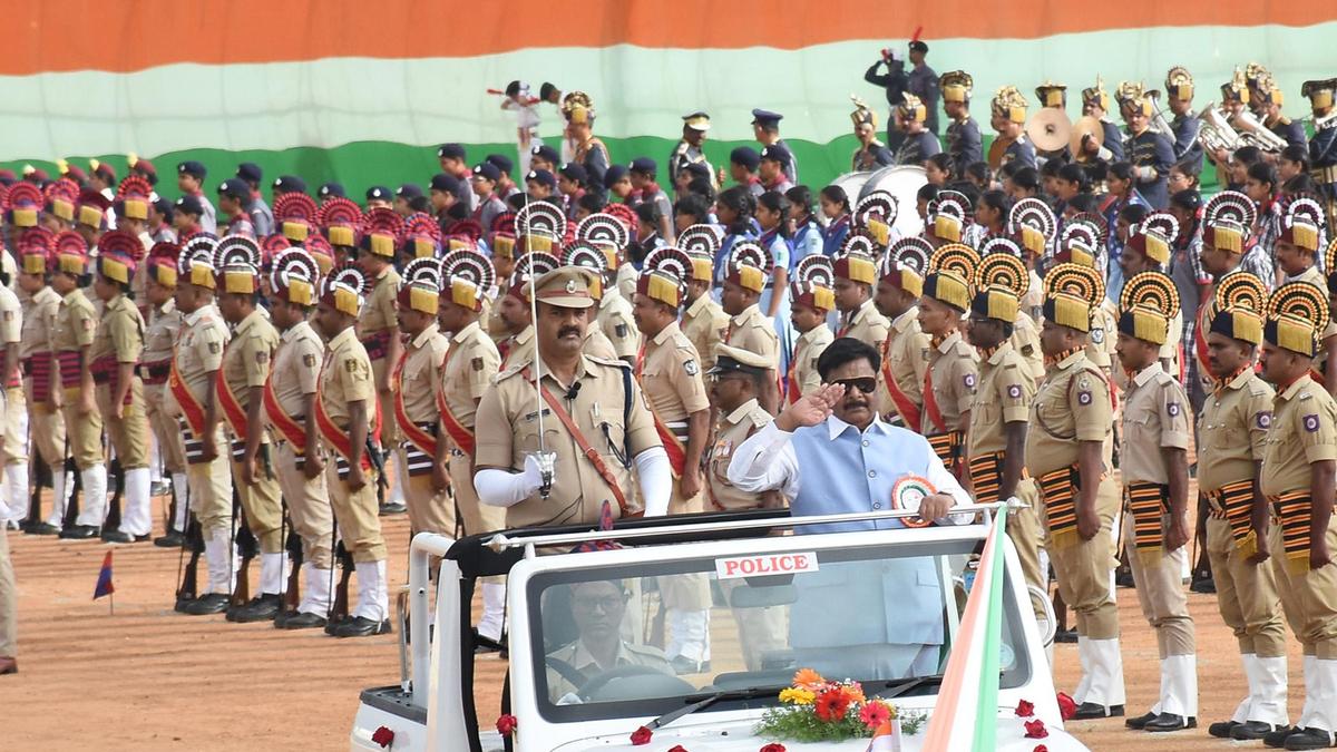 26 जनवरी, 2026 को मैसूरु के बन्नीमंतप में टॉर्च लाइट परेड ग्राउंड में गणतंत्र दिवस समारोह में मैसूरु जिले के प्रभारी मंत्री एचसी महादेवप्पा। | फोटो क्रेडिट: एमए श्रीराम