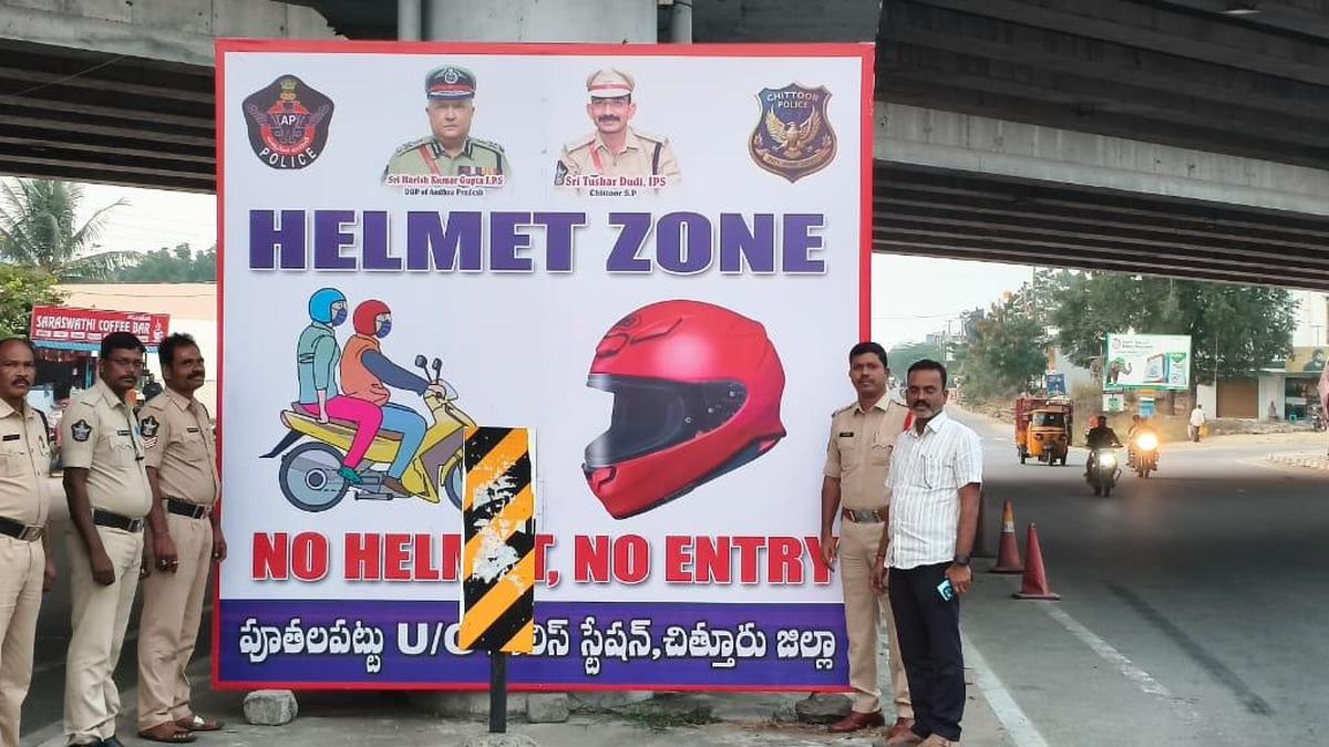 सड़क सुरक्षा उपायों को बढ़ावा देने के लिए चल रहे अभियान के हिस्से के रूप में, पुलिस अधीक्षक तुषार डूडी ने सोमवार (05 जनवरी, 2025) को रंगमपेटा क्रॉस के पास व्यस्त चित्तूर-तिरुपति राष्ट्रीय राजमार्ग पर एक हेलमेट जागरूकता पहल शुरू की। डिप्टी एसपी (चित्तूर) टी. साईनाथ भी उपस्थित थे। अधिकारियों ने दोपहिया वाहन चालकों के लिए हेलमेट के अनिवार्य उपयोग पर प्रकाश डालते हुए एक प्रमुख फ्लेक्स बैनर लगाया।