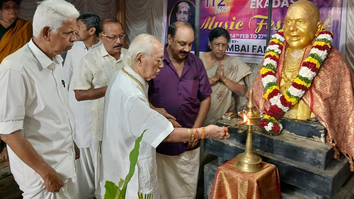 कर्नाटक और हिंदुस्तानी संगीतकार टीवी गोपालकृष्णन ने मंगलवार को पलक्कड़ के पास कोट्टई में 112वें चेंबई एकादशी संगीत समारोह का उद्घाटन करने के लिए चेंबई वैद्यनाथ भागवत की प्रतिमा के सामने पारंपरिक दीपक जलाया।