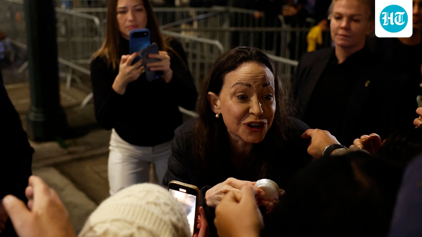 मचाडो – जो जनवरी में राष्ट्रपति निकोलस मादुरो के शासन को चुनौती देने के बाद गायब हो गए थे – रहस्य में डूबे वेनेजुएला से भागने के बाद गुरुवार सुबह पहली बार नार्वे की राजधानी में एक होटल की बालकनी में समर्थकों का उत्साह बढ़ाने के लिए उभरे।