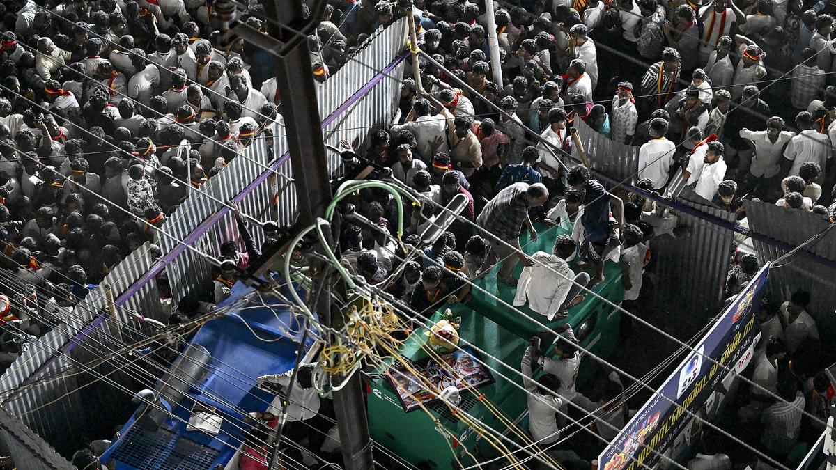 27 सितंबर, 2025 को करूर में अभिनेता विजय की रैली में भगदड़ मच गई, जिसके बाद राज्य में राजनीतिक बैठकों और रैलियों के लिए एक एसओपी तैयार करना पड़ा। फ़ाइल | फोटो साभार: एम. मूर्ति