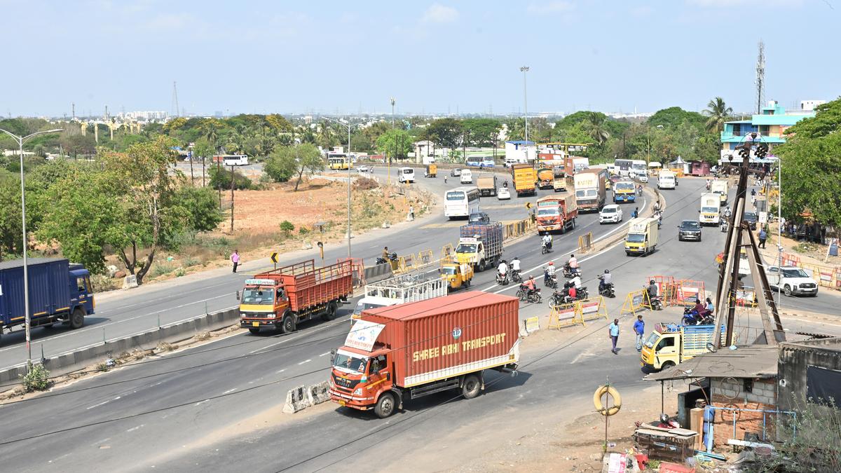 निवासियों ने कहा कि चेन्नई-बेंगलुरु राष्ट्रीय राजमार्ग के विस्तार में देरी भारी यातायात भीड़ के प्रमुख कारणों में से एक है। | फोटो साभार: बी वेलंकन्नी राज