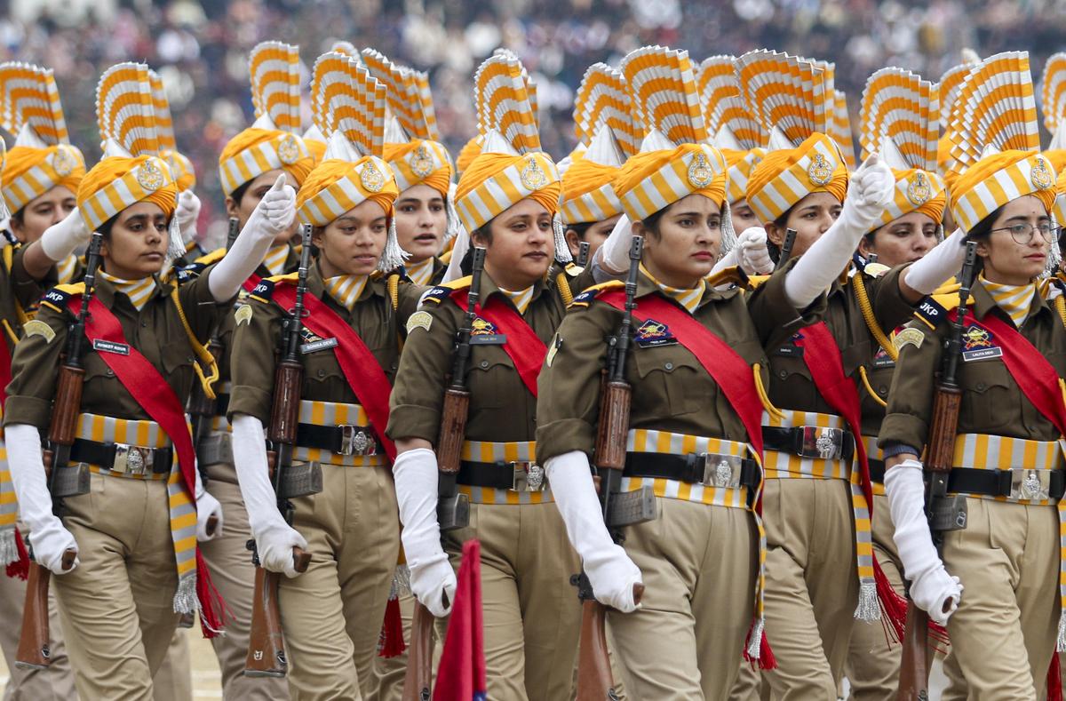77वें गणतंत्र दिवस परेड के दौरान अर्धसैनिक बल की एक टुकड़ी कार्तव्य पथ पर मार्च करती हुई। फोटो: शिव कुमार पुष्पाकर