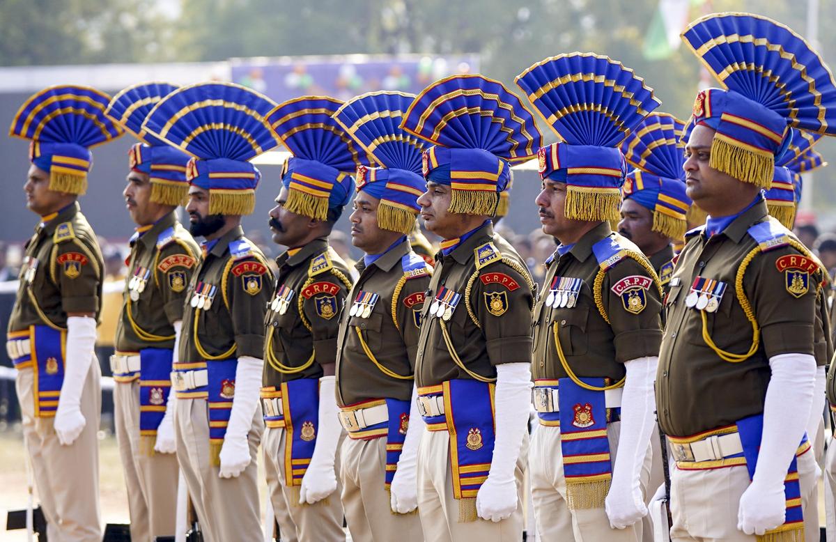 राजस्थान के अजमेर में आयोजित राज्य स्तरीय 77वें गणतंत्र दिवस समारोह के दौरान केंद्रीय रिजर्व पुलिस बल (सीआरपीएफ) के जवानों ने सटीकता के साथ मार्च किया। फोटोः पीटीआई