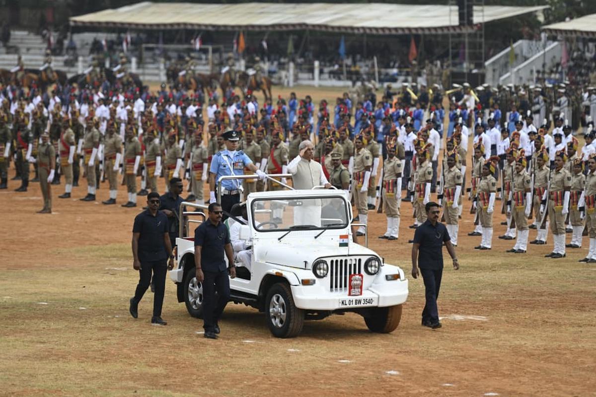 केरल के राज्यपाल राजेंद्र विश्वनाथ आर्लेकर ने 77वें गणतंत्र दिवस समारोह के दौरान तिरुवनंतपुरम के सेंट्रल स्टेडियम में मुख्यमंत्री पिनाराई विजयन की उपस्थिति में राष्ट्रीय ध्वज फहराने के बाद गार्ड ऑफ ऑनर प्राप्त किया।