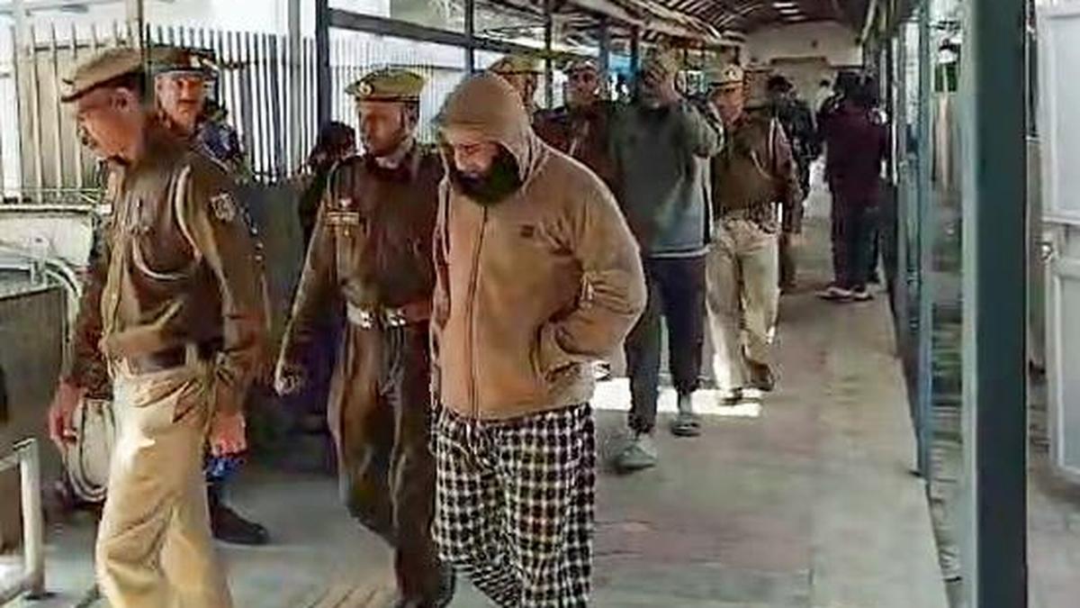 लाल किला ब्लास्ट मामले में जम्मू-कश्मीर से गिरफ्तार किए गए दो लोगों को 25 फरवरी, 2026 को नई दिल्ली में विशेष एनआईए अदालत में पेश करने के लिए पटियाला हाउस कोर्ट लाया जा रहा है। फोटो क्रेडिट: एएनआई