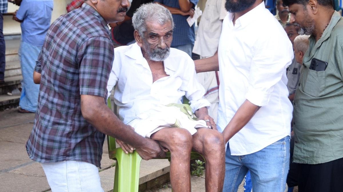 अस्सी वर्षीय कृष्णन को गुरुवार को वोट डालने के लिए कोझिकोड के नादक्कावु के सरकारी वोकेशनल हायर सेकेंडरी स्कूल फॉर गर्ल्स के मतदान केंद्र पर ले जाया गया। | फोटो साभार: के रागेश