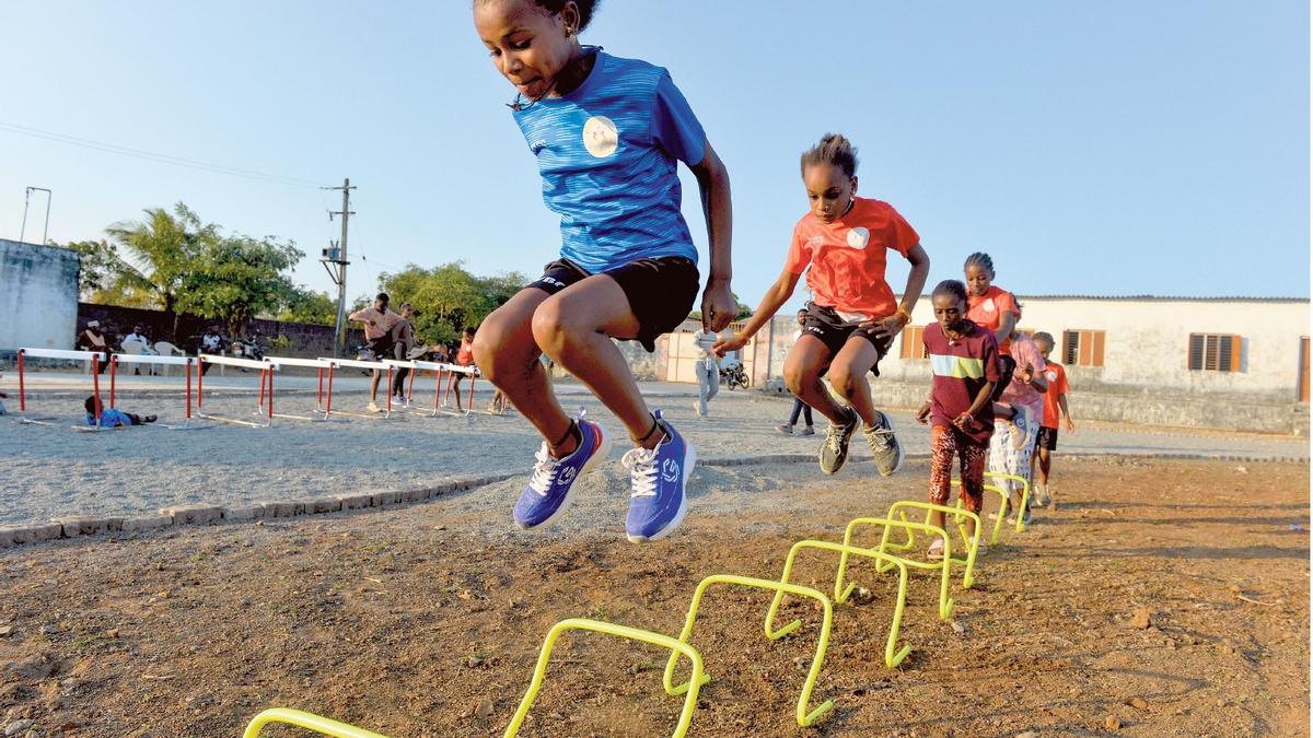 ट्रैक पर: आदिवासी आश्रम शाला के छात्र स्कूल में कूदने का अभ्यास करते हैं, जहां कई सिद्दी बादशाह युवा प्रतिस्पर्धी खेलों के लिए प्रशिक्षण लेते हैं।