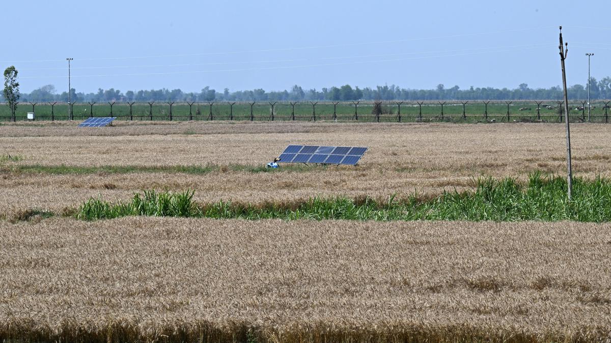 पंजाब के गुरदासपुर जिले के गुलाब गांव में अंतर्राष्ट्रीय (भारत-पाकिस्तान) सीमा की बाड़ के पास कृषि क्षेत्र। | फोटो साभार: आरवी मूर्ति