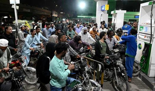 कराची में पेट्रोल की बढ़ती कीमतों के बीच गैस स्टेशन पर ग्राहकों की कतार