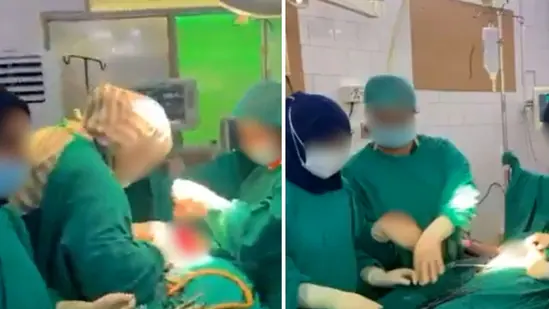 वीडियो में कथित तौर पर दो टीमों को एक ऑपरेटिंग थिएटर के अंदर अलग-अलग मरीजों पर सी-सेक्शन प्रक्रियाएं करते हुए दिखाया गया है। वीडियो रिकॉर्ड कर रहे लोगों को यह सुझाव देते सुना जा सकता है कि टीमें जल्द से जल्द सर्जरी पूरी करें।