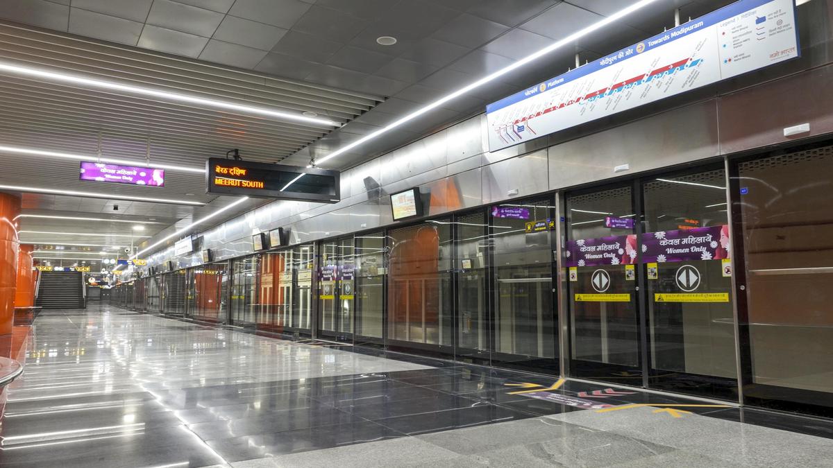 दिल्ली-गाजियाबाद-मेरठ नमो भारत कॉरिडोर के नवनिर्मित स्टेशन का आंतरिक भाग। फ़ाइल | फोटो साभार: पीटीआई