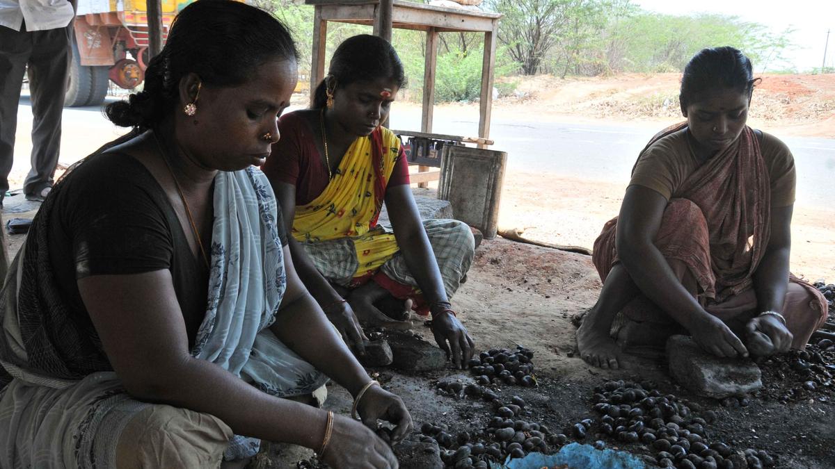 गंधर्वकोट्टई और अथानाकोट्टई में काजू उत्पादक सरकार से क्षेत्र में एक प्रसंस्करण इकाई स्थापित करने का आग्रह कर रहे हैं। | फोटो साभार: एम. मूर्ति