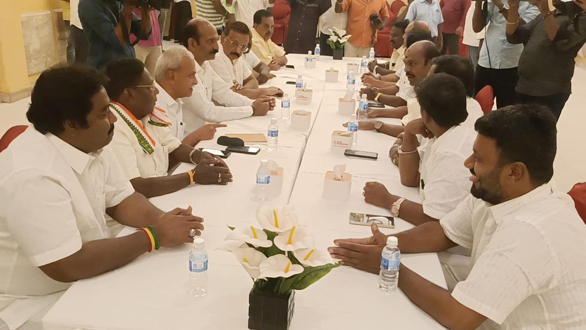 कांग्रेस और द्रमुक नेताओं ने शनिवार को केंद्र शासित प्रदेश में 2026 विधानसभा चुनावों के लिए सीट बंटवारे पर चर्चा करने के लिए अजंता सिग्नल के पास एक होटल में मुलाकात की।