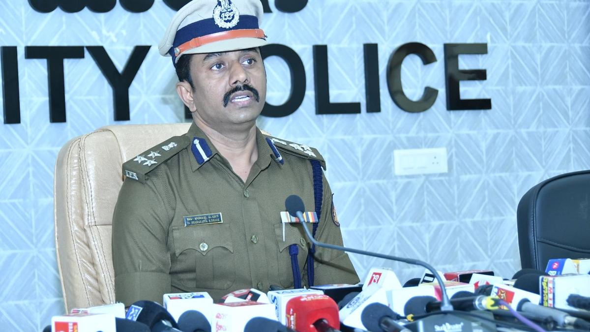 पुलिस आयुक्त शरणप्पा एस. ढगे शुक्रवार को कलबुर्गी में पत्रकारों को संबोधित करते हुए। | फोटो साभार: अरुण कुलकर्णी