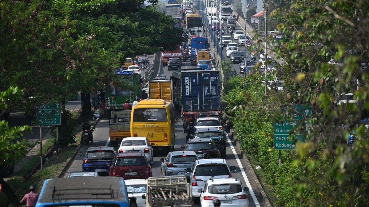 बुधवार को एनएच बाईपास के पलारीवट्टोम-एडापल्ली खंड पर ट्रैफिक ब्लॉक देखा गया। | फोटो साभार: तुलसी कक्कट