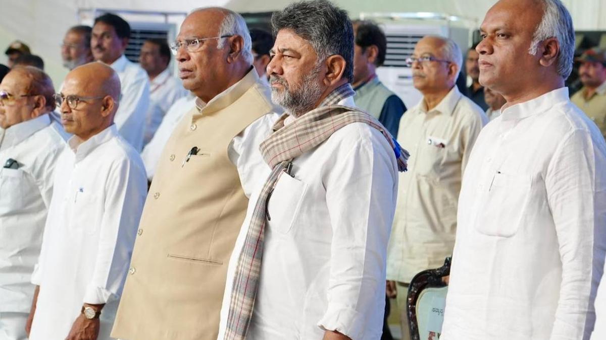 कांग्रेस अध्यक्ष मल्लिकार्जुन खड़गे और उपमुख्यमंत्री डीके शिवकुमार समेत अन्य मौजूद थे।