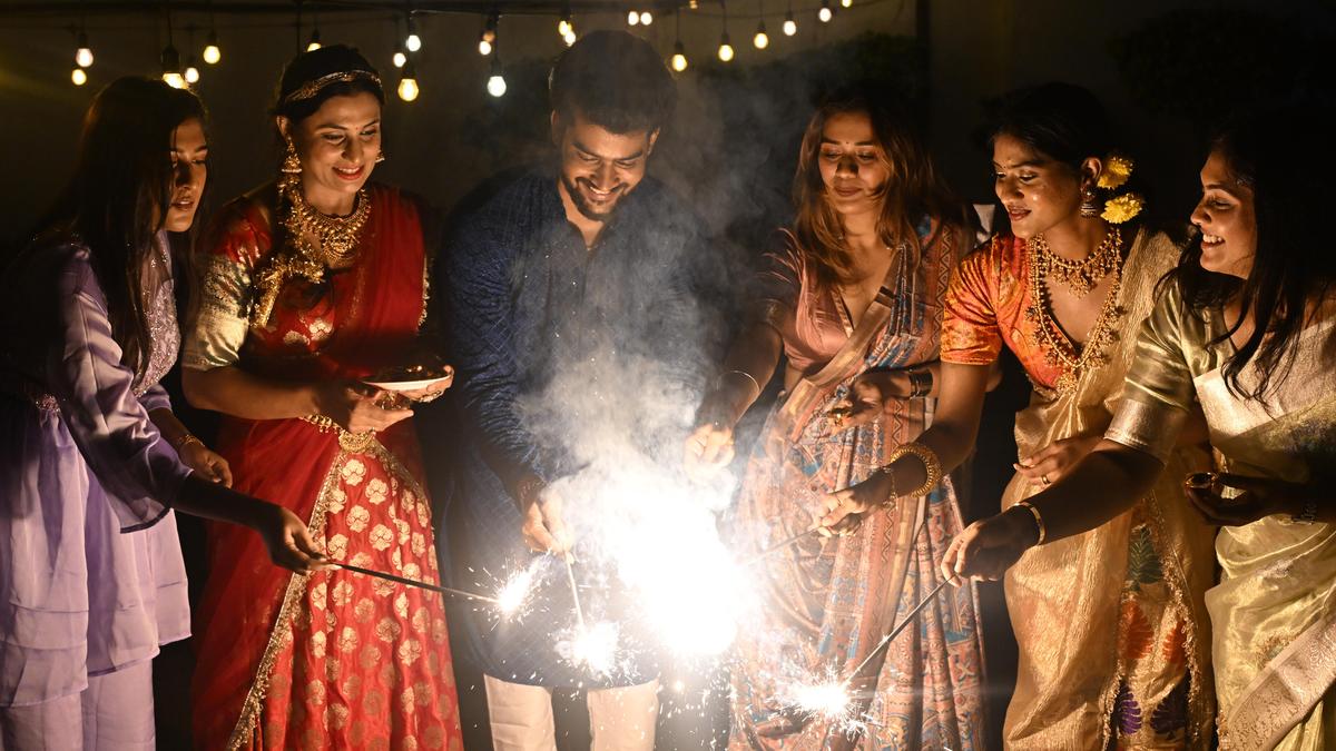 19 अक्टूबर 2025 को चेन्नई में दीपावली महोत्सव की पूर्व संध्या पर लोग पटाखे फोड़ते हुए फोटो साभार: बी. जोथी रामलिंगम
