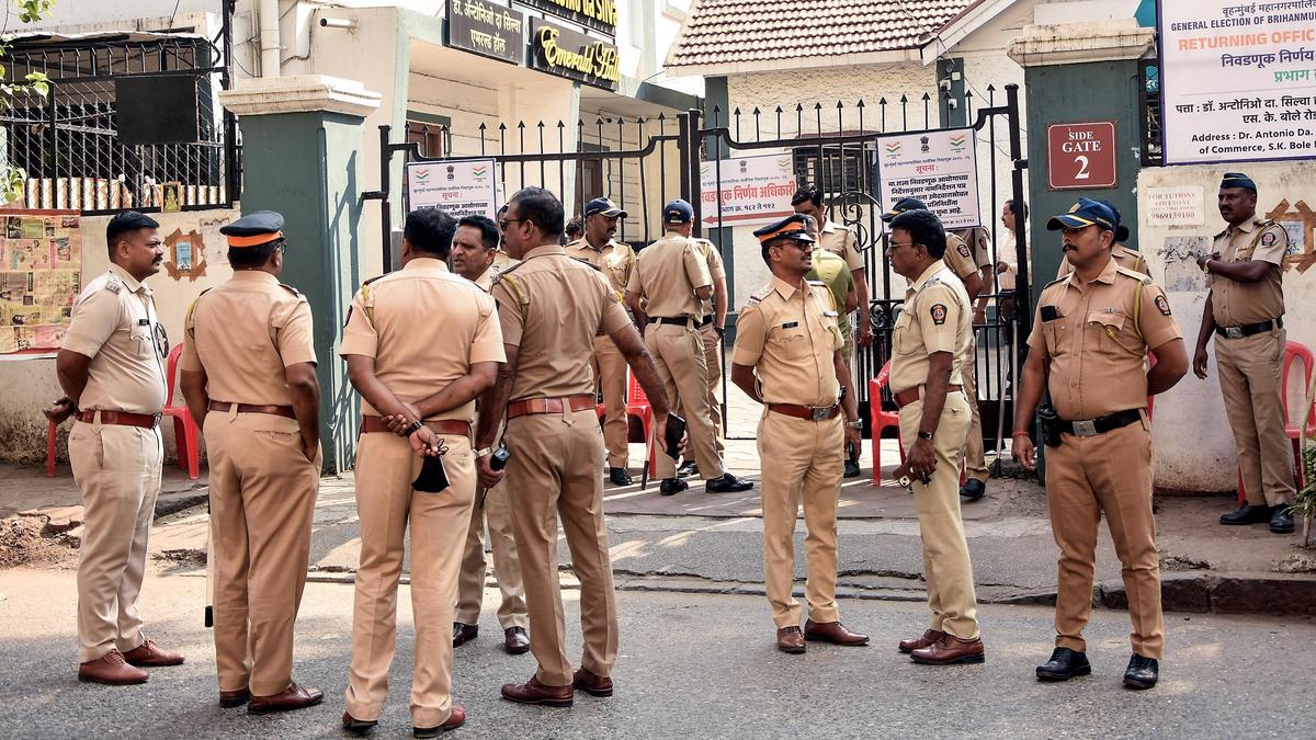30 दिसंबर, 2025 को मुंबई के दादर में बीएमसी चुनाव नामांकन भरने वाले केंद्र पर पुलिस कर्मी। फोटो क्रेडिट: एएनआई