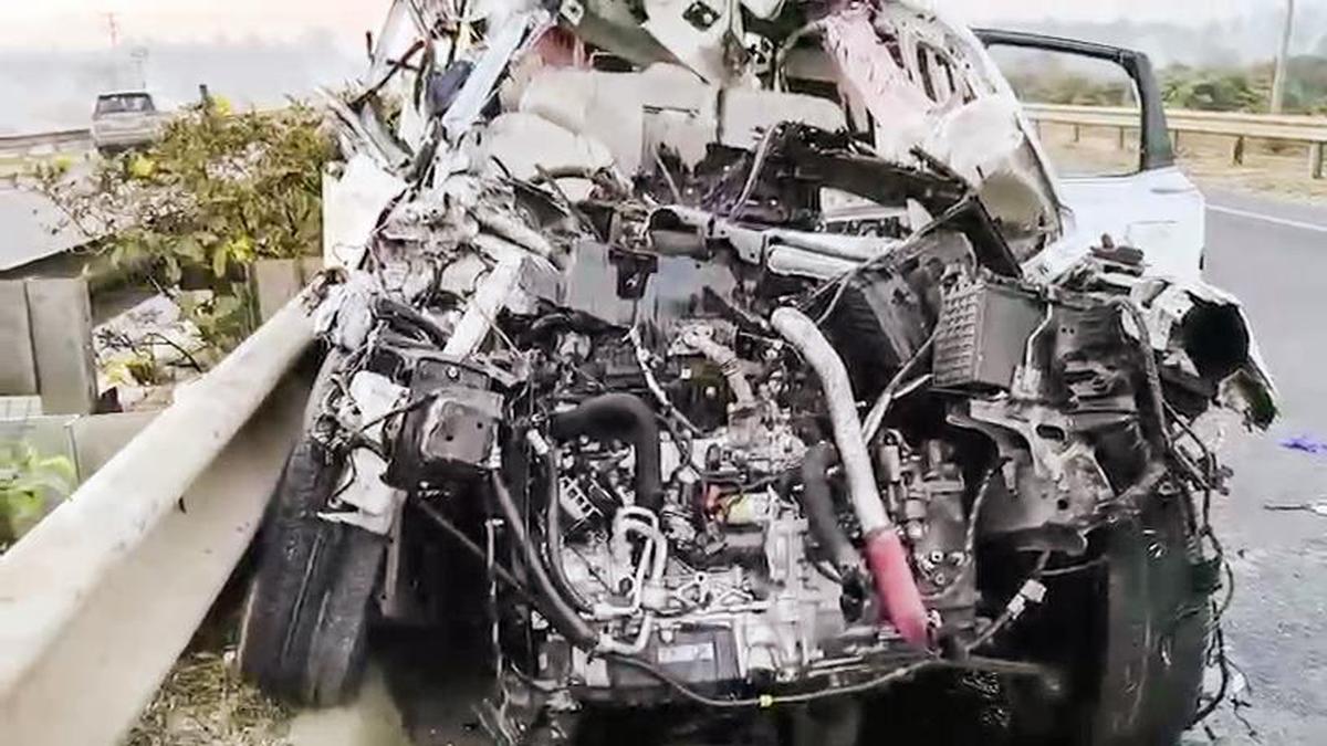 शुक्रवार को होसकोटे-डोब्बस्पेट राष्ट्रीय राजमार्ग पर एक सड़क दुर्घटना में क्षतिग्रस्त एक वाहन का वीडियो। एएनआई वीडियो ग्रैब) | फोटो क्रेडिट: एएनआई