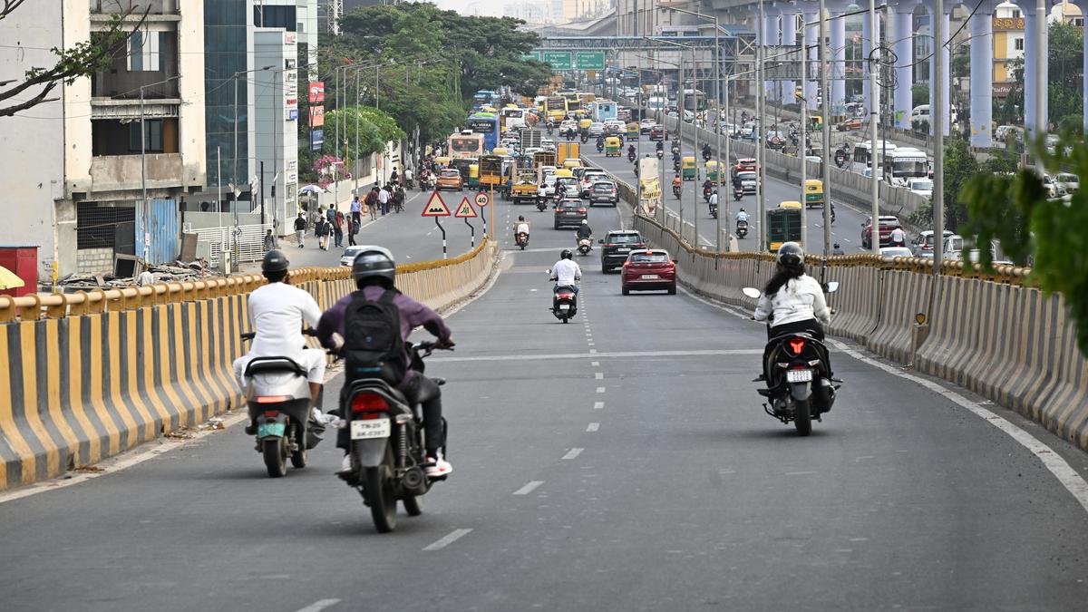 10 अप्रैल, 2026 को बेंगलुरु में सिल्क बोर्ड के पास डबल डेकर फ्लाईओवर का एक दृश्य फ़ोटो साभार: एलन एजेन्यूज़ जे.