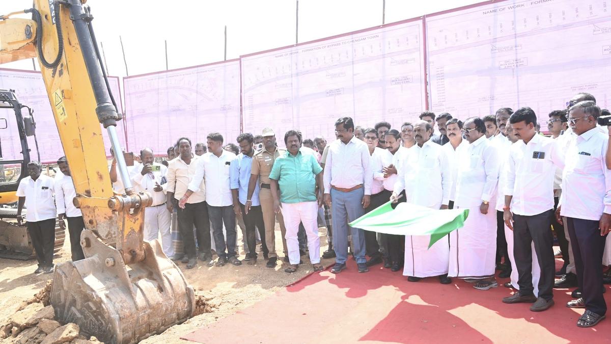 लोक निर्माण और राजमार्ग मंत्री ईवी वेलु ने कुछ दिन पहले कलेक्टर के. थर्पागराज, के. मुरली, अधीक्षण अभियंता (एसई), राज्य राजमार्ग, और पी. ज्ञानवेलु, मंडल अभियंता (डीई), राज्य राजमार्ग, की उपस्थिति में कार्य की आधारशिला रखी।