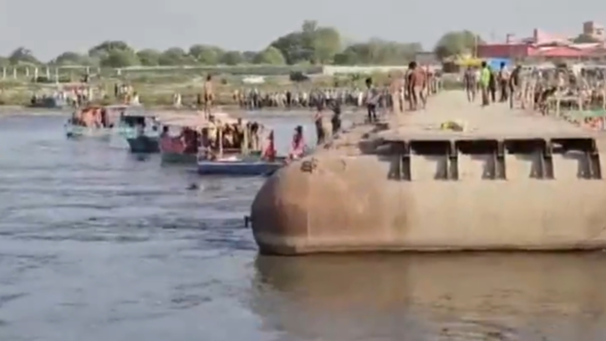 वृन्दावन में पर्यटकों से भरी एक नाव यमुना में पलट गई. (स्क्रीनग्रैब) (X/@ANI)