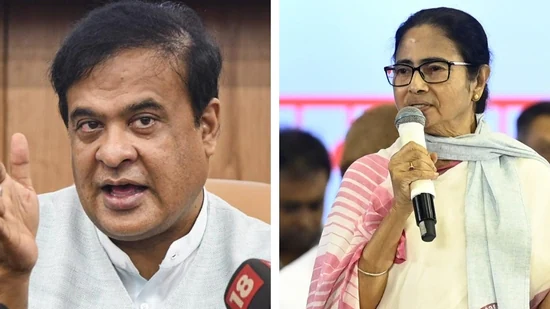 असम के मुख्यमंत्री हिमंत बिस्वा सरमा और पश्चिम बंगाल की मुख्यमंत्री ममता बनर्जी।