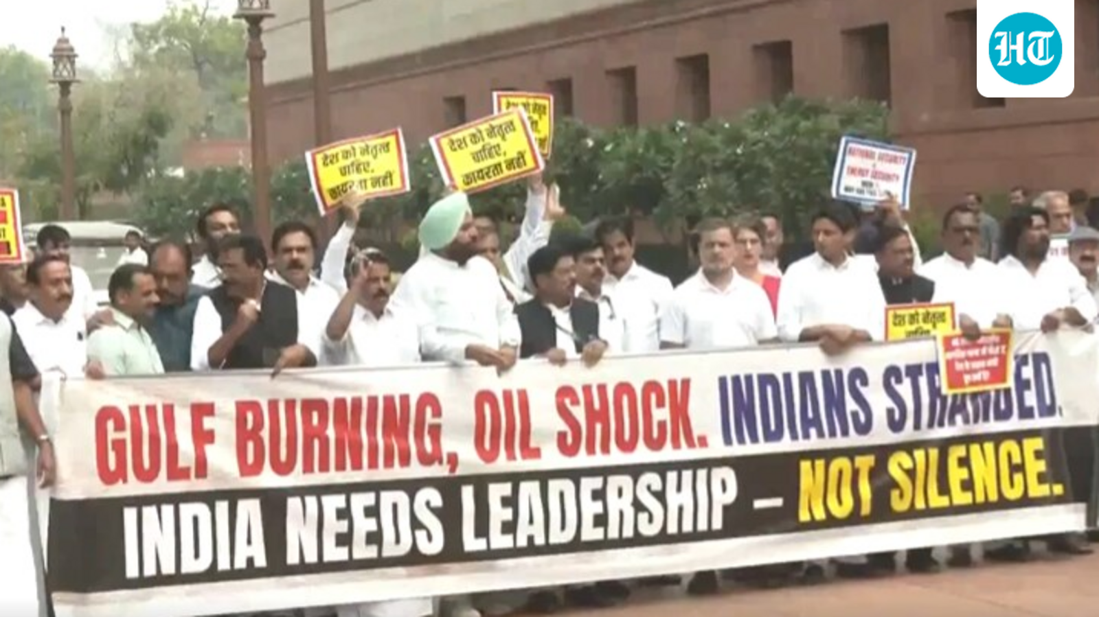 विरोध करने वाले सांसदों में एक बड़ा बैनर था जिस पर लिखा था, “खाड़ी जल रही है, तेल का झटका। भारतीय फंसे हुए हैं। भारत को नेतृत्व की जरूरत है – चुप्पी की नहीं”, विरोध करने वाले सांसदों में क्रमशः लोकसभा और राज्यसभा में विपक्ष के नेता राहुल गांधी और मल्लिकार्जुन खड़गे दोनों शामिल थे।