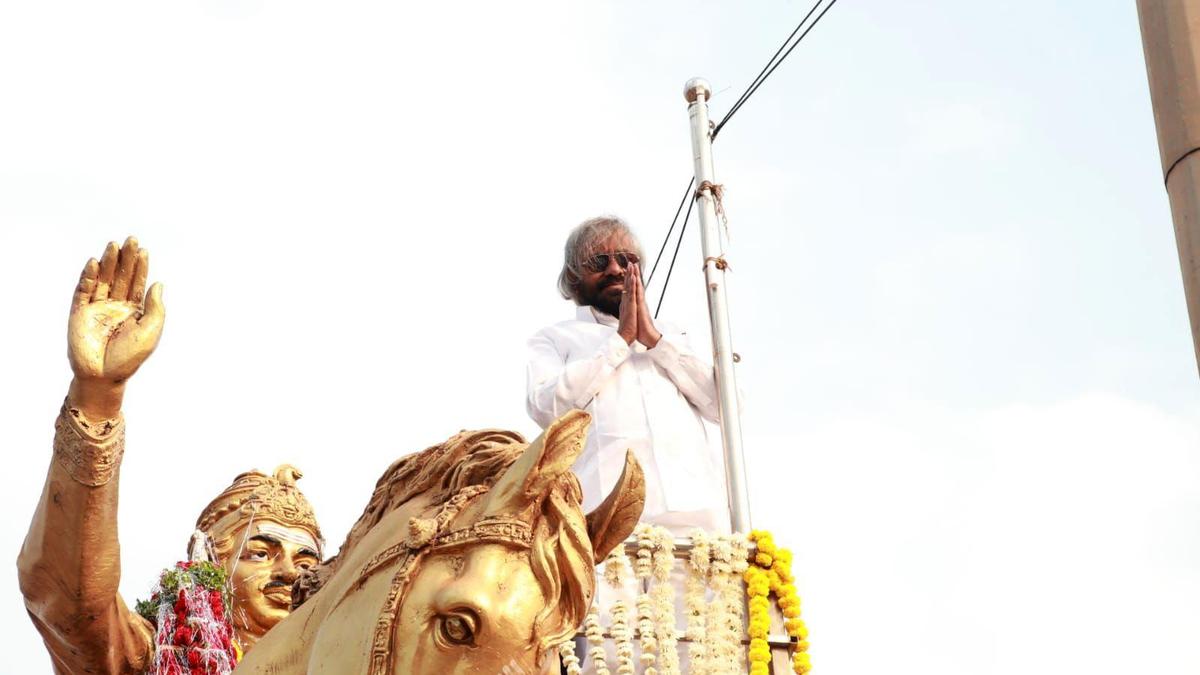 अखिल भारत वीरशैव लिंगायत महासभा के राष्ट्रीय अध्यक्ष चुने जाने के बाद रविवार को बीदर में एक जुलूस के दौरान बसवन्ना की प्रतिमा पर माला चढ़ाने के बाद वन मंत्री ईश्वर खंड्रे ने हाथ जोड़कर समर्थकों का अभिवादन किया। | फोटो साभार: विशेष व्यवस्था
