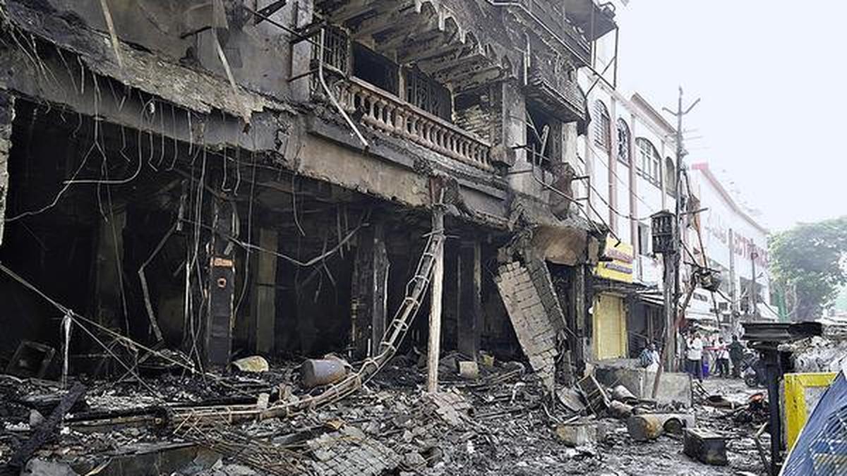 मंगलवार को हैदराबाद के शालीबंदा में इलेक्ट्रॉनिक्स शोरूम के अवशेष। | फोटो साभार: सिद्धांत ठाकुर