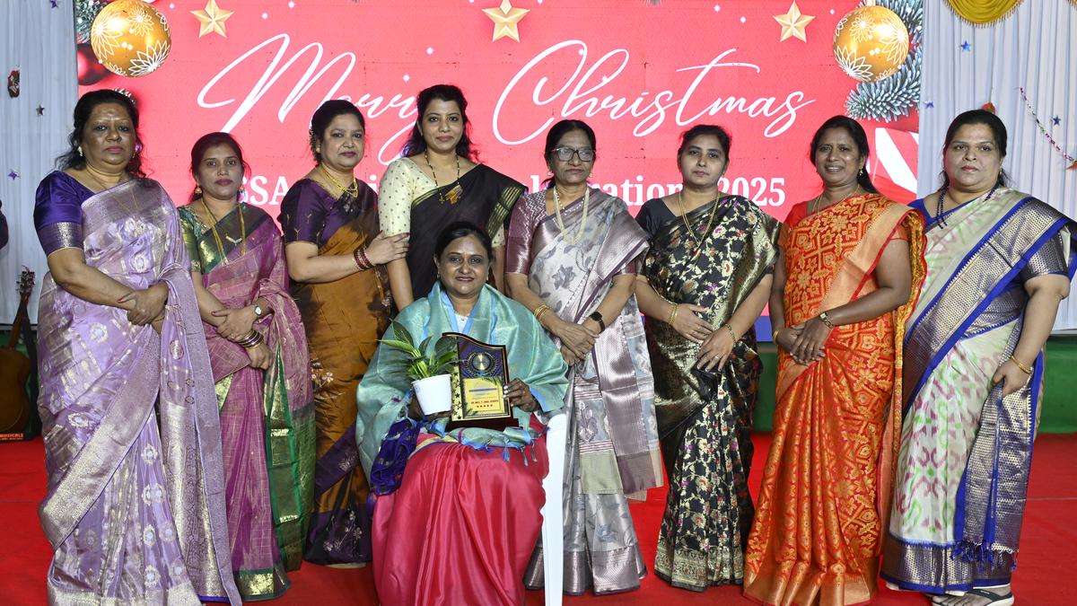 सेंट फ्रांसिस कॉलेज फॉर वुमेन की प्रिंसिपल टी. उमा जोसेफ को शनिवार को ओल्ड अलवाल में एक गेटेड समुदाय में आयोजित अर्ध-क्रिसमस समारोह में सम्मानित किया गया। फोटो साभार: नागरा गोपाल
