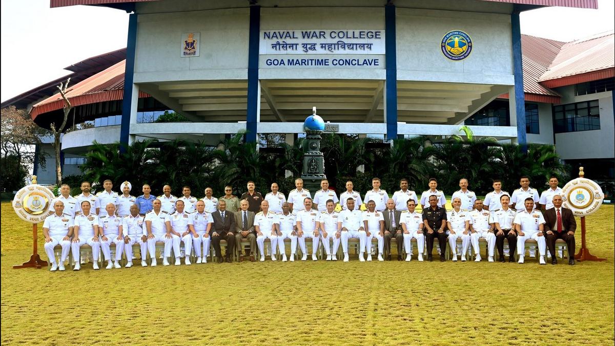 21 फरवरी, 2026 को गोवा में गोवा मैरीटाइम कॉन्क्लेव 2026 में प्रतिभागियों की एक समूह तस्वीर। फोटो: एक्स/@इंडियननेवी