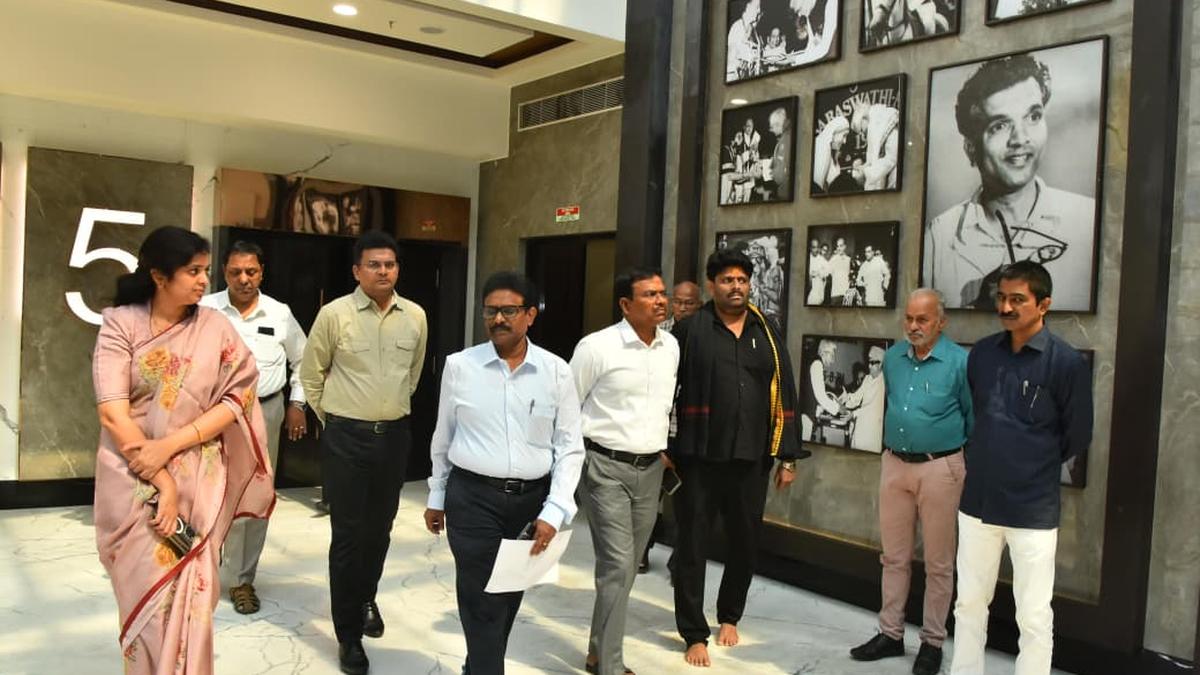 तेलंगाना सूचना एवं जनसंपर्क विशेष आयुक्त चौ. मंगलवार को प्रसाद थिएटर का निरीक्षण करतीं प्रियंका। | फोटो साभार: विशेष व्यवस्था